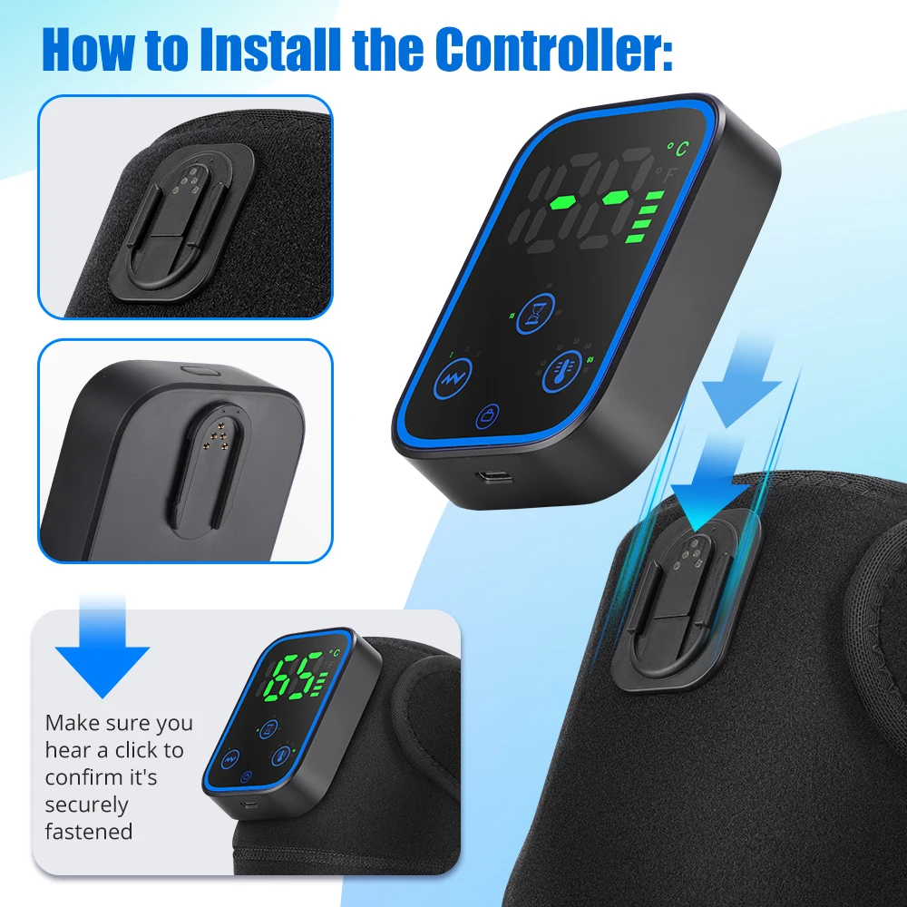 4. The knee massage pad features a LCD touchscreen with clear and extra large digital readouts for effortless operation. Quickly check battery level, temperature settings, and modes at a glance, while the automatic lock function prevents accidental adjustments.